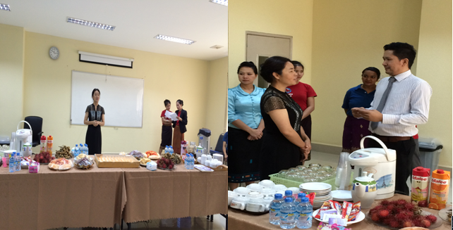 19日上午,老挝索塔萨卡科学技术管理学院为学生举行了小型的欢迎仪式,老方院长对学生们的到来表示热烈欢迎,并介绍了同学们今后的学习见习安排,预祝学生学有所获;段副院长也对老方热情周到的接待和对学生的学习安排表示感谢,希望同学们能够克服各种困难,尽快适应环境。