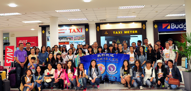 2015年8月27日,华文学院共计58名学生在李进副院长和吴榕峰老师的带领下,顺利前往泰国清迈大学,拉开了为期一年的留学序幕。