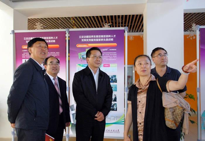 4月11日,云南省副省长高峰一行莅临我校,就全省小语种人才培养情况进行调研。省教育厅何金平厅长及省发改委、省财政厅、省人社厅、省外办等部门负责人陪同调研。我校党委书记叶燎原、校长杨林、副校长原一川、华文学院党委书记和雪莲以及校长助理、华文学院院长武友德随同调研并详细汇报了我校相关工作情况。