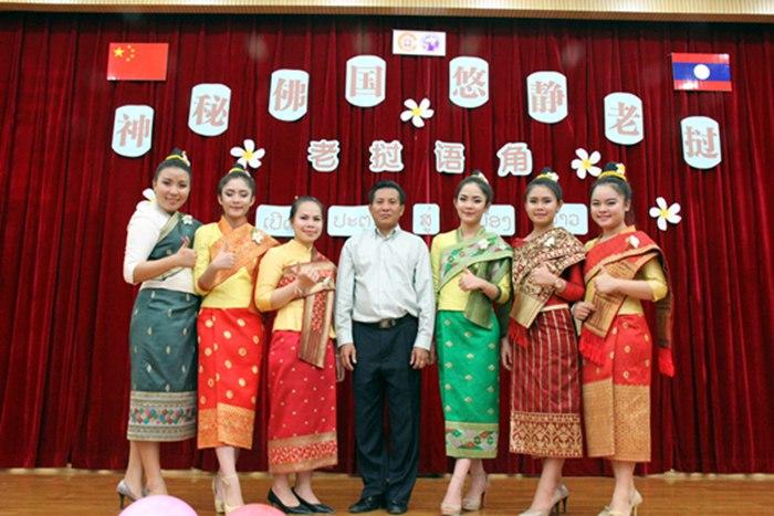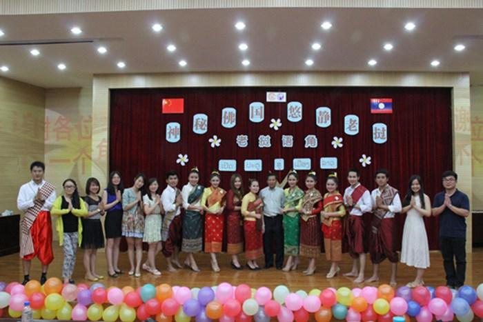 由中国学生和老挝留学生一起表演的《Basalop》把现场的气氛推向了高潮,体现了本次活动的主旨―――增进中国、老挝两国学生之间的沟通交流,为彼此的语言学习构建一个更宽阔的平台。一段介绍老挝的视频,美丽的自然风光、浓郁的文化气息让大家对老挝多了几分向往。老挝留学生万拉沙同学当场为大家制作了老挝美食――舂木瓜,第一次品尝到这种美食的同学都不禁竖起了大拇指。