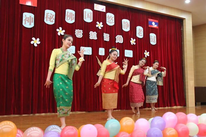 占巴花代表着无上的圣洁与宁静,四名身穿老挝传统服装的老挝留学生为大家表演了舞蹈《占芭花》,赢得了在场观众的阵阵掌声。在老挝,糯米是主食,笙是主要的演奏乐器,传统舞蹈《糯米与笙的乐曲》展现了老挝人民的日常生活之间的相亲相爱,舞蹈把在场各位观众都带到了一个佛教气息浓郁、民风淳朴的神秘国度。