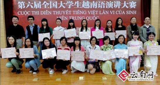 云南华文学院较好地实践了“综合集成”的发展理念,他们在学校的领导和支持下,通过组织、承办、参与各类东南亚南亚语种比赛,整合各方资源为学生提供实践和锻炼机会,提高学生的语言应用能力。2012年,该校承办了由省教育厅主办的首届云南省高校东南亚语比赛周小语种演讲比赛。2012年12月,该校和泰国孔敬大学共同举办云南省第二届“孔敬大学杯”泰语演讲大赛。2013年9月,该校承办了由中国非通用语教学研究会主办的“第六届全国大学生越南语演讲大赛暨越南语教学研讨会”,这是非通用语界在我省举办的第一次全国性赛事,北京大学、北京外国语大学、上海外国语大学等23所高校参赛,选手达85名。2013年11月,他们积极参加“第二届云南省高校东南亚南亚语种演讲比赛”。2014年5月,学校将再次和泰国孔敬大学共同举办云南省第三届“孔敬大学杯”泰语演讲大赛。