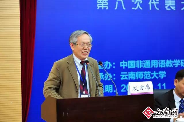 (图为教育部外指委非通用语分委会副主任委员、中国非通用语教学研究会会长钟智翔教授)