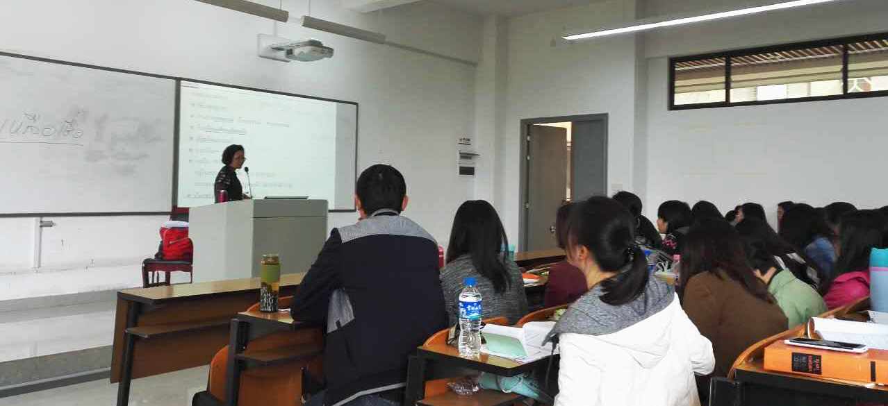 林秀梅教授此次莅临我院,主要为2012级泰语专业的本科生讲授泰语专业选修课程《泰国文学作品选读》,林教授选取了泰国的几篇优秀短篇小说为学生讲解,旨在引导泰语专业学生学习泰国文学作品,帮助学生理解小说的内容,分析人物特点,探析其社会文化背景。林老师风趣幽默的教学风格深受学生的喜爱。