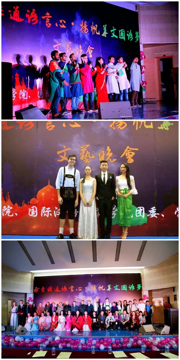 活动步入尾声,由云南华文学院、国际汉语教育学院的中外留学生和青年志愿者协会带来《非通用语歌曲联欢+最初的梦想》,最后,本次晚会在主持人的祝福声中圆满结束。本场晚会气氛热烈,场上互动环节展现了同学们的活力与热情,中外新生的合作表演,充分彰显了华文国语学院的风采。这场晚会让我们明白青春的火苗将在大学这一个大舞台点燃,相信我们的梦想将在这里起飞,我们终将成为这舞台的主角。