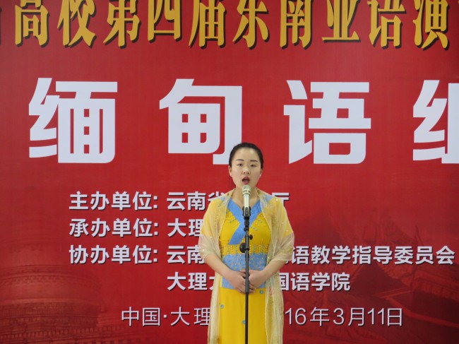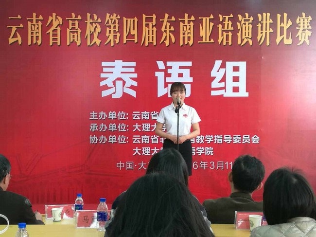 由云南省教育厅主办,大理大学外国语学院承办、云南省高等学校非通用语专业教学指导委员会协办的“云南省高校第四届东南亚语演讲比赛”于3月11日下午在大理大学古城校区举行。比赛设置泰语、缅甸语、越南语3个语种,分设专业组和非专业组,每个语种按分组设一等奖、二等奖、三等奖及优秀奖。
